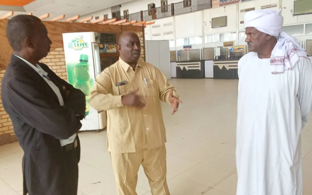 وفي الصورة يقدم رئيس لجنة المعارض بالملتقى الاستثماري ابوبكر محمد الأمين شرحا للترتيبات النهائية لوفد محلية شندي مدير إدارة الشباب والرياضة مزمل سيد احمد عبد الرحمن ومدير اذاعة شندي المهندس النذير محمد أحمد سليمان.