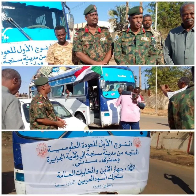 مع بشريات الإنتصارات المتتالية التى تحققها القوات المسلحة السودانية وبمبادرة كريمة من متحرك أسود العرين بسنجة إنطلقت اليوم مبادرة العودة الطوعية المتجهة من سنجة إلى مدينة ود مدنى برعاية كريمة من محلية سنجة