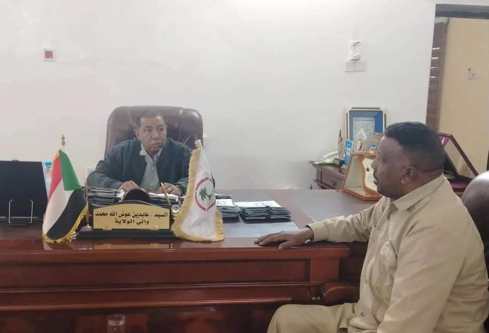 بحث والي الشمالية عابدين عوض الله مع منسق شؤون التوأمة والمغتربين والمعابر محمد عوض، نتائج زيارته للعاصمة الإدارية بورتسودان.