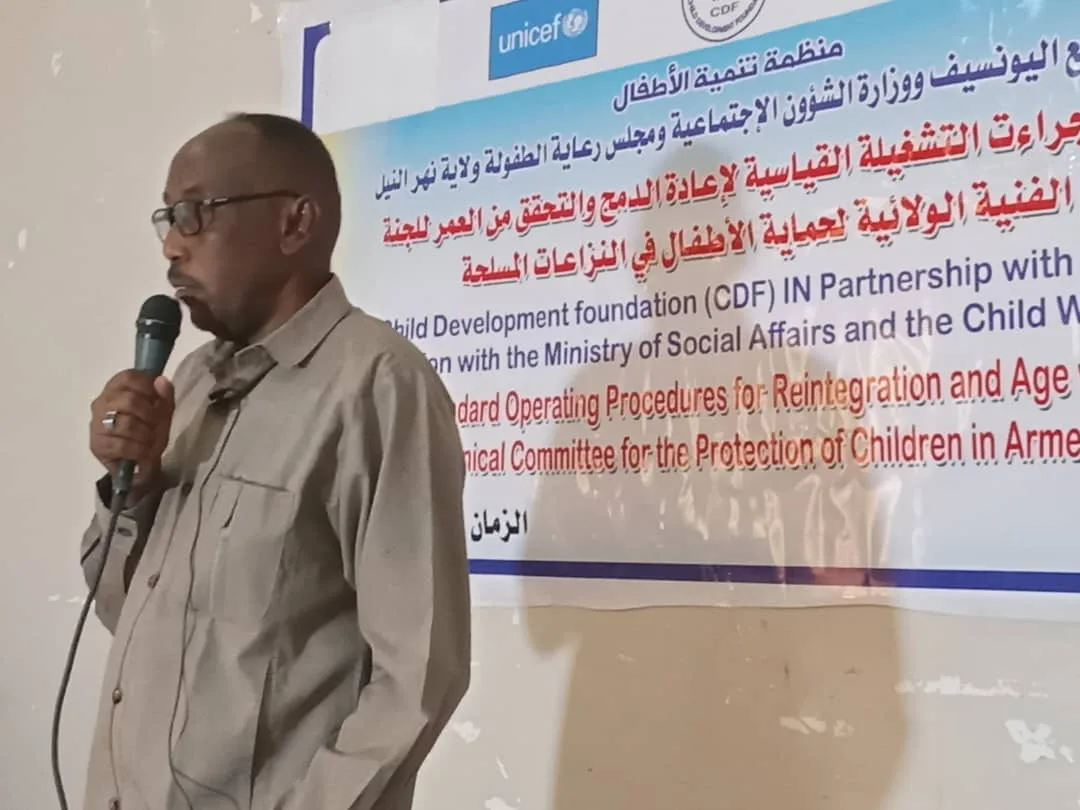 وقال المدير التنفيذي لمحلية شندي في الورشة التي التي أقامتها منظمة تنمية الأطفال بالشراكة مع اليونسيف ووزارة التنمية الإجتماعية ومجلس رعاية الطفولة بنهر النيل بقاعة إذاعة شندي تحت عنوان( الاجراءات التشغيليةالقياسيةلاعادة الدمج والتحقق من العمرللجنة الفنية الولائية لحماية الأطفال في النزاعات المسلحة.)