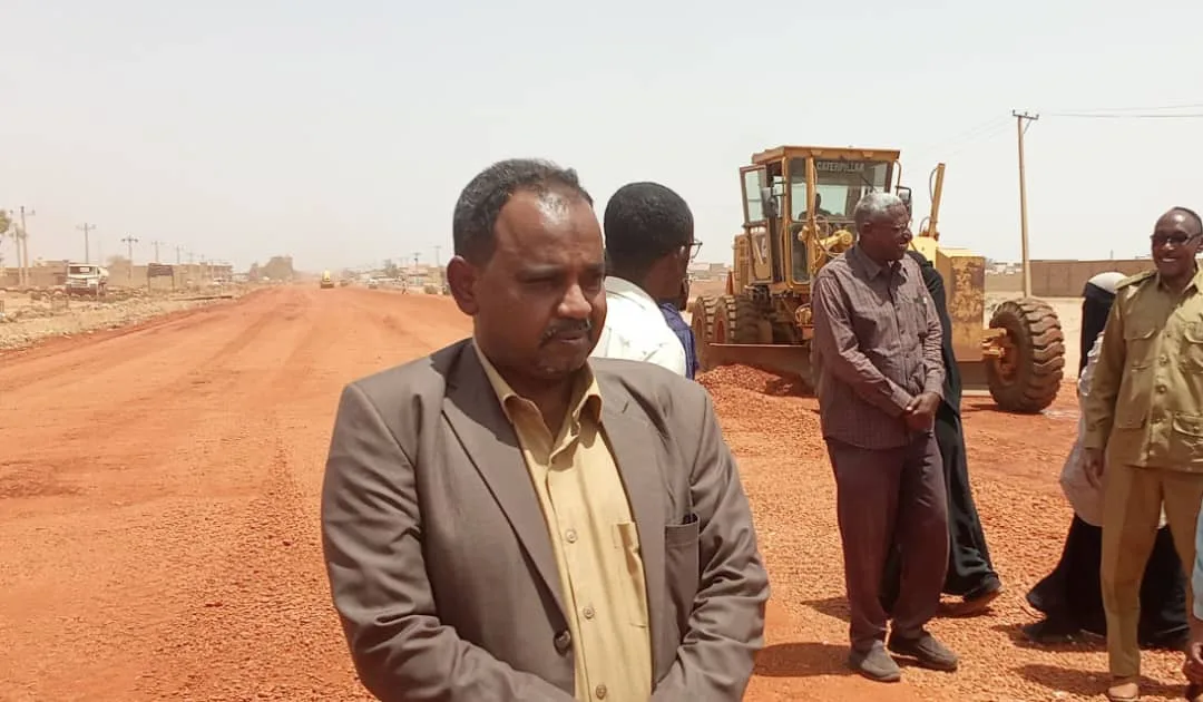 وفي الصورة وزير البنى التحتية والتنمية العمرانية بولاية نهر النيل المهندس سمير سعيد عبد الله يقف على مراحل تشييد طريق العبور الدسمة بشندي.