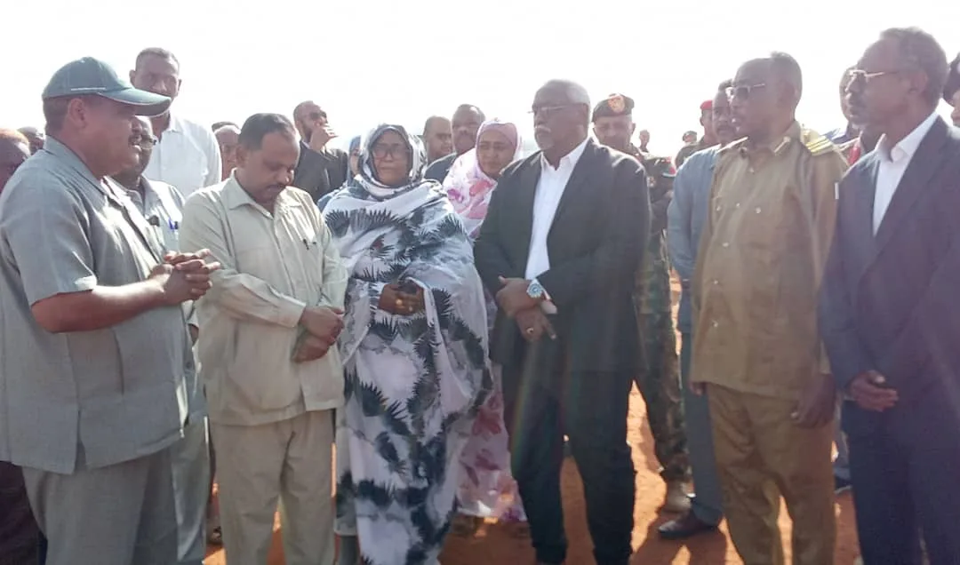 والصورة في منطقة ام علي شمال شندي وفيها والي نهر النيل د.محمد البدوي يستمع الى تقرير بالارقام من مدير الطرق والجسور بوزارة البنى التحتية المهندس خالد فتحي ويظهر في الصورة من اليمين الى الشمال الدكتور عوض الكريم المبارك المدير التنفيذي لصندوق التنمية المحلية والمدير التنفيذي لمحلية شندي خالد عبد الغفار الشيخ ووزير المالية اميرة أحمد حسن ووزير البنى التحتية والتنمية العمرانية المهندس سمير سعيد عبد الله