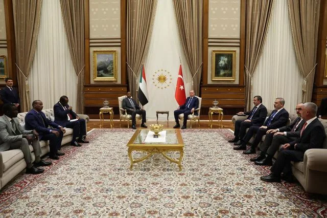 وأطلع الفريق أول ركن البرهان، الرئيس التركي على تطورات الأوضاع في السودان والجهود المبذولة لتحقيق السلام والإستقرار مؤكدا عمق العلاقات الأزلية التي تربط بين السودان وتركيا مشيراً الى الروابط التاريخية بين الشعبين الصديقين.