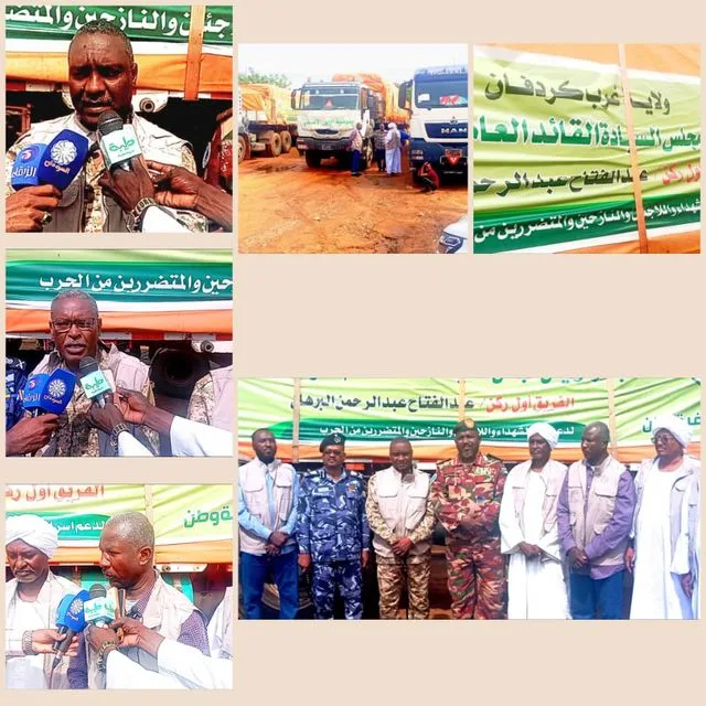 حكومة غرب كردفان برئاسة اللواء الركن حقوقي م محمد آدم محمد جايد واعضاء الحكومة ولجنة امن الولاية ومفوض العون الإنساني استقبلوا القافلة الانسانية الكبيرة من مبادرة رئيس مجلس السيادة والتي تحتوي علي سلل غذائية ومواد عينية ،
