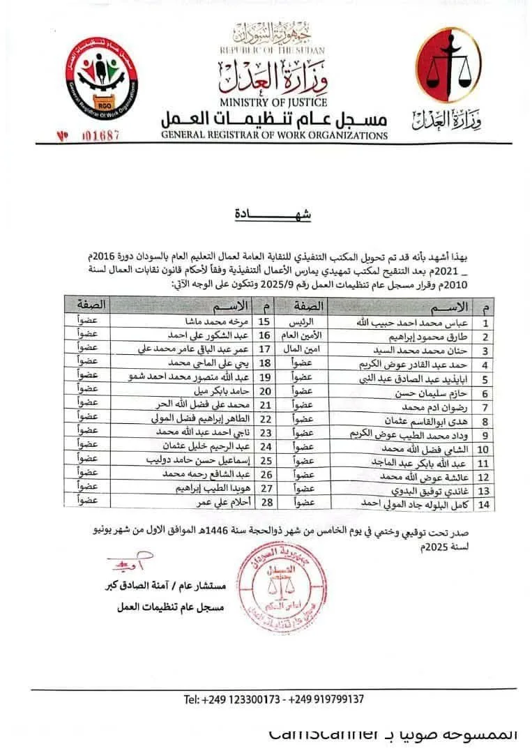 نحن في لجنة المعلمين السودانيين، نُعلن وبكل وضوح أنّنا نرفض رفضًا قاطعًا وحاسمًا القرار الصادر عن سلطة الأمر الواقع بتعيين ما يُسمى بـ“مكتب تمهيدي” باسم النقابة العامة لعمال التعليم العام.