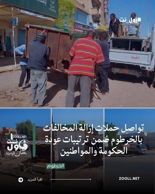 وأوضح أن الحملات استهدفت الشوارع الرئيسة المحيطة بالسوق المركزي ومداخل الطرق الحاكمة، شملت امتداد شارع أفريقيا جنوباً، وشارع محمد نجيب من تقاطع شارع زيرو وحتى تقاطع شارع مختار سليمان عند مدخل السوق المركزي غرباً، إضافة إلى إزالة المخالفات بمنطقة وسط الخرطوم، وشوارع شرق الخرطوم، بما في ذلك الستين وعبيد ختم وشارع النيل عند تقاطع أوماك.