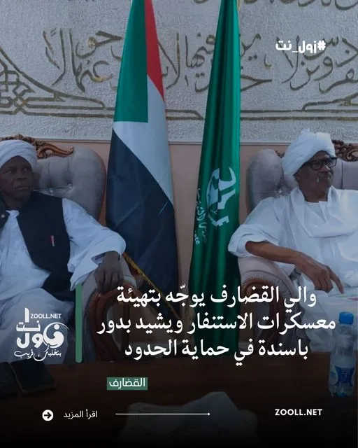 والي القضارف يوجّه بتهيئة معسكرات الاستنفار ويشيد بدور باسندة في حماية الحدود
