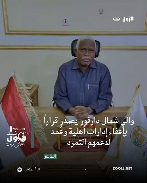 وأوضح القرار أن الإعفاء جاء استناداً إلى مخالفة المذكورين لأحكام المادة (1/13) من قانون تنظيم الإدارة الأهلية لولاية شمال دارفور لسنة 1999، بعد ثبوت قيامهم بحشد مستنفرين من أبناء قبائلهم والتحريض على تقويض مؤسسات الدولة، إلى جانب اتهامات تتعلق بالمشاركة في أعمال عنف وانتهاكات ارتكبتها القوات المتمردة.