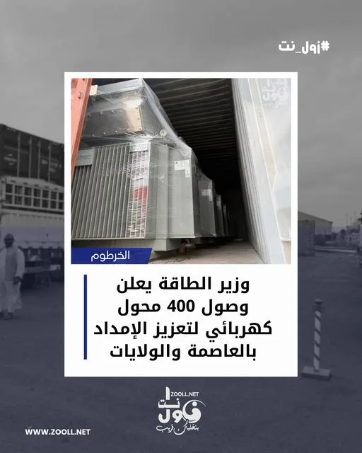 وأكد الوزير أن هذه الخطوة تأتي في إطار الجهود المتواصلة لوزارة الطاقة لاستكمال احتياجات العاصمة والولايات الأخرى من المحولات الكهربائية التي تضررت نتيجة أعمال التخريب، مشيراً إلى أن العمل جارٍ لتأمين الإمداد الكهربائي وإعادة الاستقرار للشبكة القومية.