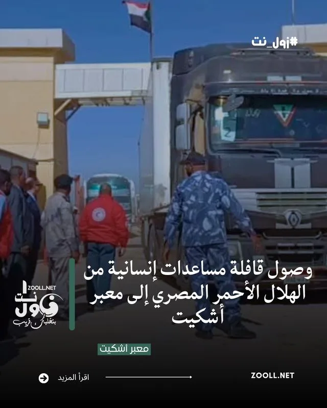 في خطوة إنسانية جديدة تعكس عمق العلاقات الأخوية، وصلت اليوم إلى معبر أشكيت الحدودي بمحلية وادي حلفا قافلة مساعدات إنسانية مقدّمة من الهلال الأحمر المصري إلى جمعية الهلال الأحمر السوداني، تحمل نحو 70 طناً من المواد الغذائية ومواد الإيواء والمستهلكات الطبية وأطقم النظافة الشخصية.