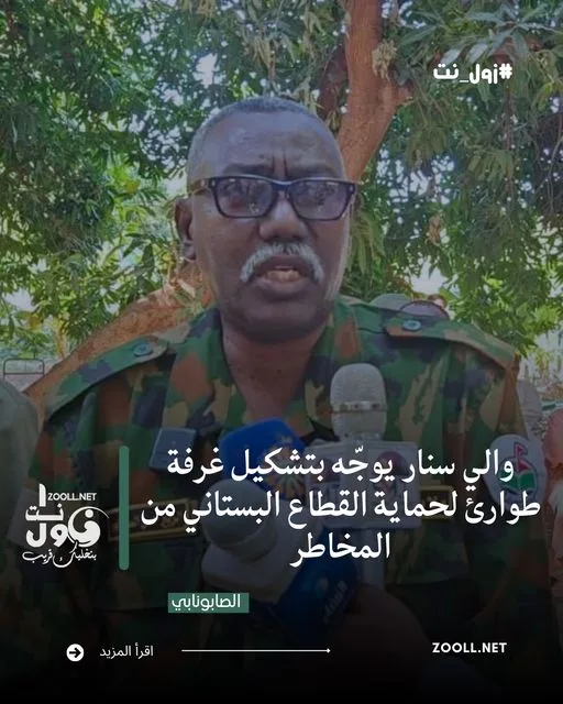 في خطوة تهدف إلى تأمين الإنتاج وتعزيز الاستقرار الزراعي، وجّه والي ولاية سنار بتشكيل غرفة طوارئ خاصة بالقطاع البستاني، لمتابعة قضايا المنتجين ميدانياً وحماية هذا القطاع الحيوي من المخاطر، وعلى رأسها الفيضانات.