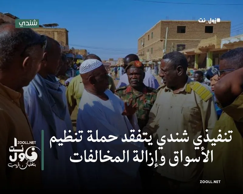 ورافق المدير التنفيذي خلال الجولة أعضاء لجنة أمن المحلية، ومدير وحدة مدينة شندي، إلى جانب إدارات المخالفات، والشؤون الهندسية، والصحة، حيث وقف ميدانياً على عمليات التنظيم الجارية داخل السوق.