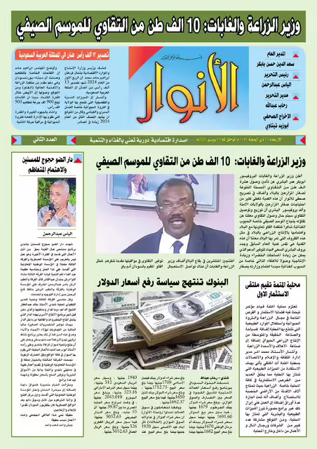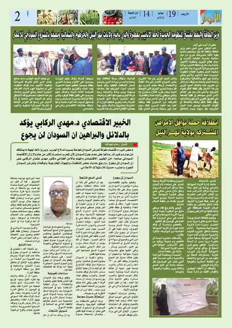 مؤكدا تعاون الوزارة لاستمرار إصدار الصحيفة معبرا عن الرغبة في أن تكون ورقية داعيا الخبراء والمختصين إلى التشارك فيها وتناول الموضوعات التي تدفع بالإنتاج الزراعي بالبلاد ورحب الخبير في التنمية البشرية والجودة والتطوير المدرب المستشار أحمد حجازي بالأنوار الاقتصادية واصفا إياها باللفتة البارعة داعيا إلى مزيد من الصحافة المتخصصة الداعمة للإنتاج والاقتصاد الوطني داعيا إلى البعد عن تناول الموضوعات السياسية وقال إن السياسة هي حجر عثرة تطور السودان