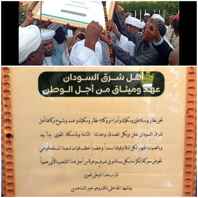 تسلم والي القضارف اللواء محمد احمد حسن وثيقة عهد وميثاق اهل شرق السودان من أجل الوطن، وجرت عملية التسليم في ختام ورشة السلم الاجتماعي وعلي شرف الاحتفال بمبادرة أبناء الشرق لتعزيز السلم المجتمعي التي عقدت بالقضارف بمشاركة واسعة من القيادات الرسمية والأهلية واكدت قيادات شرق السودان تماسك اهل الشرق ودعمهم وتضامنهم مع القوات المسلحة مشيدين بالقوات المسلحة وهي تخوض معركة الكرامة بكل بسالةوعزة من أجل هذا الشعب الأبي صونا لتراب هذا الوطن العزيز مشيرين الي دعمهم المستمر للمقاومة الشعبية موضحين ان اهل الشرق بقيادة الناظر ترك اسقطوا الإطاري وطردوا المبعوث الاممي السابق فولكر وسيسقطون كل المؤامرات التي تحاك ضد الوطن مؤكدين انهم مع الجيش والاجهزه المساندة في خندق واحد لحماية الأرض والعرض منوهين الي ان التفاف المواطنين مع قواتهم المسلحة رسالة واضحة في بريد المتربصين بامن البلاد بأن اهل السودان على قلب رجل واحد ولن يفرطوا في شبر من أرض الوطن مشيدين بالانتصارات التي حققتها القوات المسلحة في كافة المحاور ودحرها لمليشيا ال دقلو الإرهابية والعملاء والمرتزقة والخونة