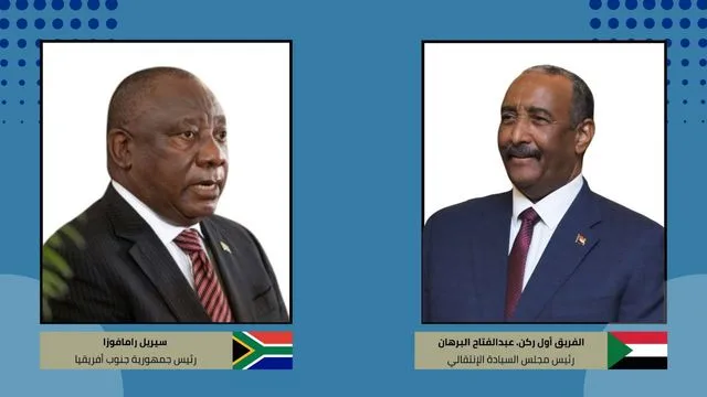 رئيس مجلس السيادة القائد العام للقوات المسلحة يهنئ رئيس جنوب إفريقيا بمناسبة إعادة انتخابه