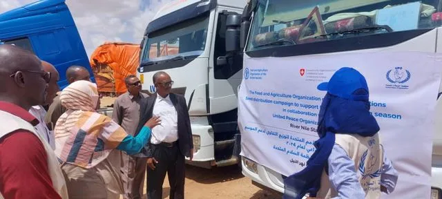 الدكتوره مني عبدالله منسق منظمة الفاو بالولاية بان هذه الكميات من التقاوي تغطي الموسم الصيفي واكدت تعاونهم مع الولاية لتحقيق الامن الغذائي للبلاد والولاية