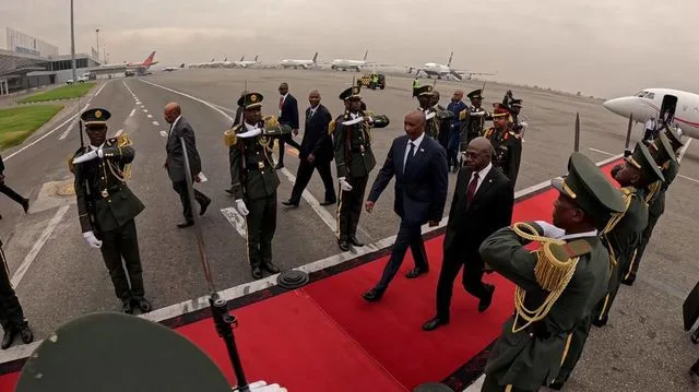 وأجريت مراسم استقبال رسمية لرئيس المجلس السيادي في القصر الرئاسي في العاصمة لواندا.