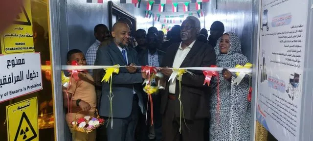 من جانبه الدكتور هيثم محمد عبدالرحيم وزير الصحة الاتحادي حيا كافة الجهات التي ساهمت في وصول هذا الجهاز للبلاد والولاية وعلي راسها الشركة الالمانيه والمصرف العربي ودولة قطر الشقيقه لدورها ومساهمتها في ترحيل ووصول الجهاز ووزارة المالية الاتحادية مؤكدا بان الجهاز يتميز بانه يعمل بكفاءه عاليه ومن احدث انواع الاجهزة واضاف بانهم في وزارة الصحة الاتحادية تركيزهم علي جلب المزيد من الاجهزة المتطوره للتشخيص عقب ماتعرضته لك المؤسسات الصحيه من تخريب ودمار ونهب من قبل المليشيا المتمرده