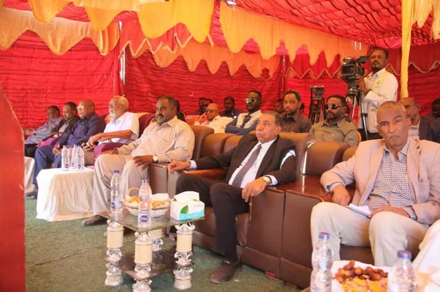 كما خاطب الاحتفال وزير الانتاج والموارد الاقتصادية بالشمالية المهندس حسين عبد الغفور مؤكدا أن مشروع معاوية البرير للاستثمار الزراعي والحيواني يمثل واحدا من المشروعات الاستثمارية النموذجية والتقنية والعلمية، مشيرا الي الدور الكبير الذي تلعبه الزراعة في دعم مجالات العمل الاقتصادي والتنموي والاجتماعي مضيفا أن عمليات حصاد محصول القمح تسير بصورة طيبة في جميع المشاريع الزراعية الحكومية والاستثمارية.