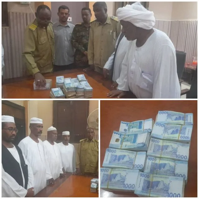 المدير التنفيذي لمحلية شندي يتسلم الدعم النقدي من تجار سوق الذرة للجرحي ويثمن مواقف التجار لدعم واسناد القوات المسلحة