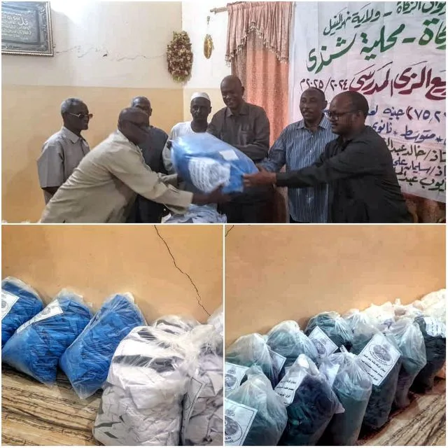 دشن المدير التنفيذي لمحلية شندي الاستاذ خالد عبد.الغفار الشيخ توزيع الزي المدرسي للعام٢٠٢٥/٢٠٢٤ م بتكلفة ٧٥/٢١٠/٠٠٠ جنيه لعدد ٣/٠٠٠ لبسه اساس ثانوي متوسط بنين وبنات بإشراف امين ديوان الزكاة بولاية نهر النيل سليمان علي عبد الله وتنفيذ ديوان الزكاه بالمحليه بحضور أعضاء لجنة امن المحلية وادارات التعليم