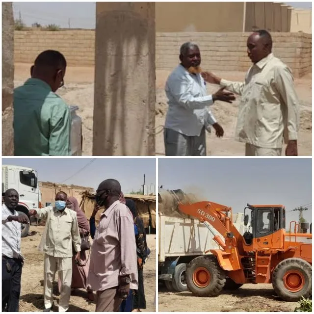 المدير التنفيذي لمحلية شندي يقف علي عمليات النظافه بالاسواق ويتفقد محطة مياه مربع ٢١ للوقوف علي الضخ التجريبي للمحطة