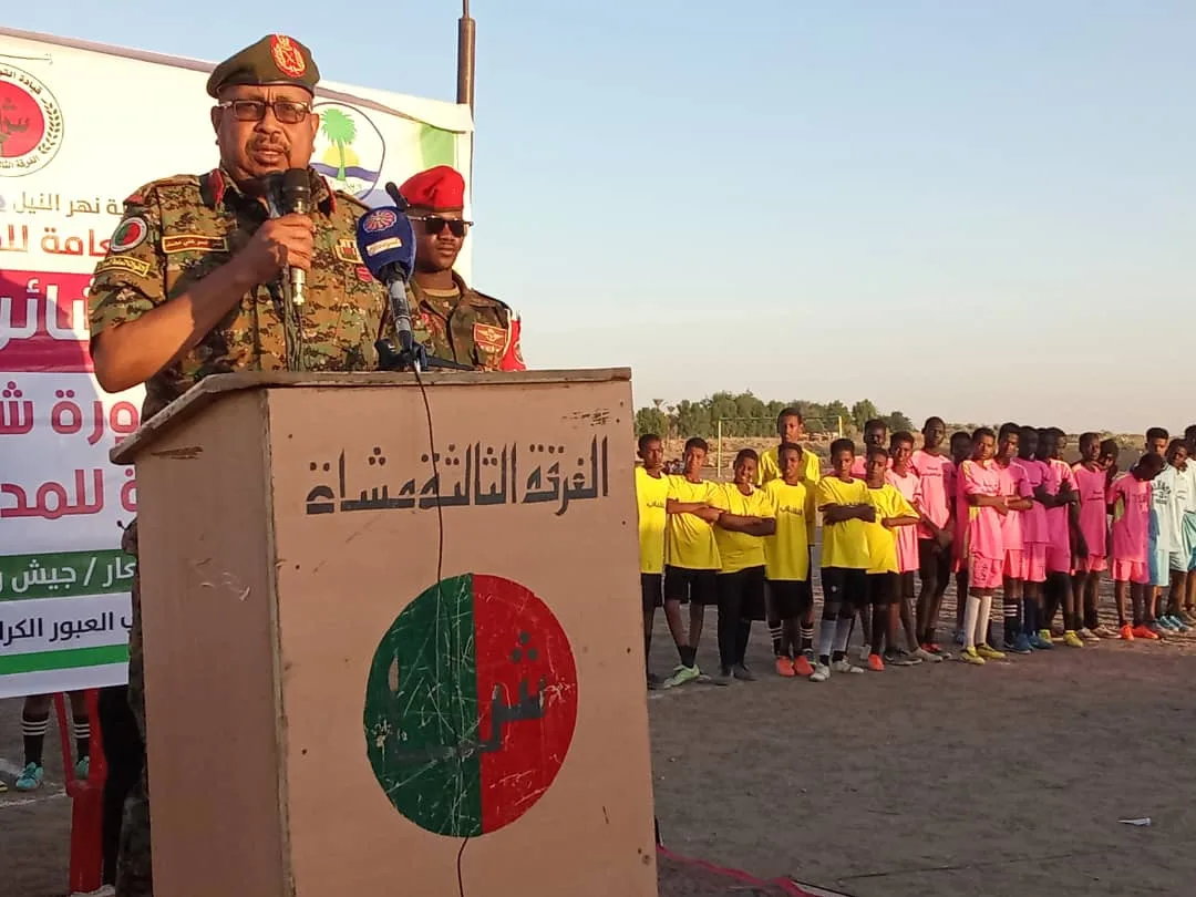 واضاف لدي مخاطبته ختام دورة شهداء الكرامة للمدارس السنية والإكاديميات الرياضية التي نظمتها إدارة الشباب والرياضة بشندي ،اضاف ان شعار جيش واحد شعب واحد قد تحقق على ارض الواقع وإن منطقة المسيكتاب كانت سباقة في دعم القوات المسلحة وفتح معسكرات التدريب.