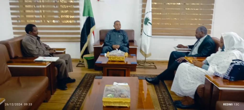إطلع والي الشمالية عابدين عوض الله بمكتبه لدى لقائه الأمين العام للثروة الحيوانية والسمكية والمراعي د. الطيب حبيب الله بحضور مدير عام وزارة المالية والقوى العاملة ومفوض التجارة بالولاية ،على المعوقات التي تواجه قطاع الثروة الحيوانية بالولاية.