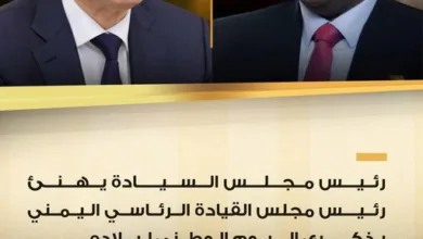 رئيس مجلس السيادة يهنئ رئيس مجلس القيادة الرئاسي اليمني بذكرى اليوم الوطني لبلاده