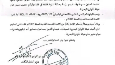 أصدر المهندس أبو بكر أبو القاسم عبد الله، وزير النقل المكلف، قرارًا أنهى بموجبه تكليف الكابتن محمد حسن مختار كمدير…