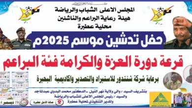 اكد يسري ابو زيد سكرتير الاتحاد الناشئين والبراعم بمحلية عطبرة اكتمال الترتيبات لانطلاقة لانطلاقة دورة العزة والكرامة فئة البراعم والتي…