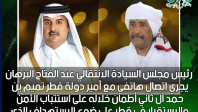 رئيس مجلس السيادة الانتقالي عبد الفتاح البرهان يجري اتصال هاتفي مع أمير دولة قطر تميم بن حمد آل ثاني أطمان…